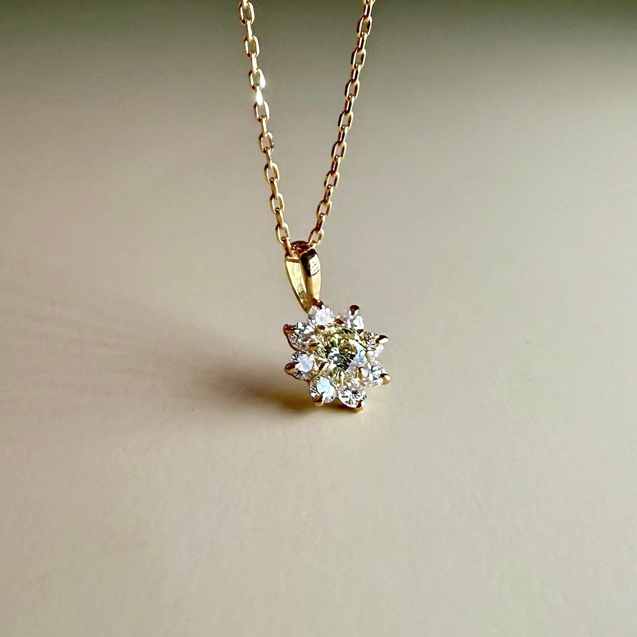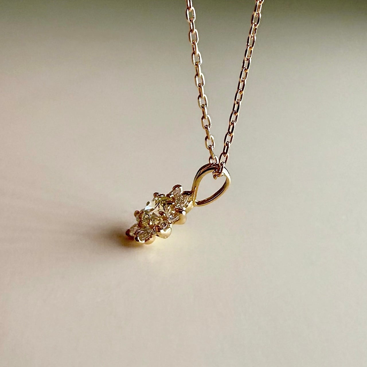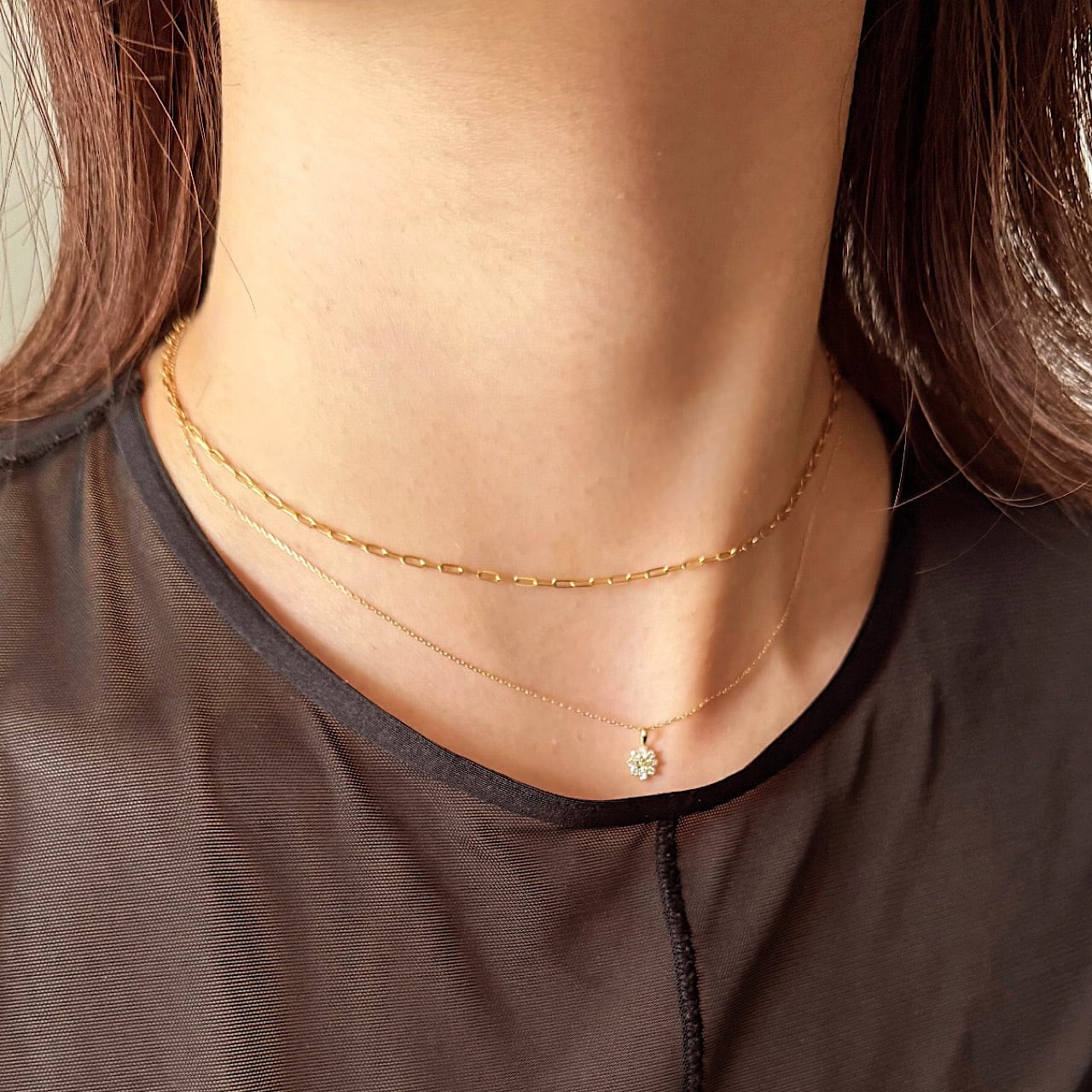 胸元でさりげなく咲くダイヤモンドの花