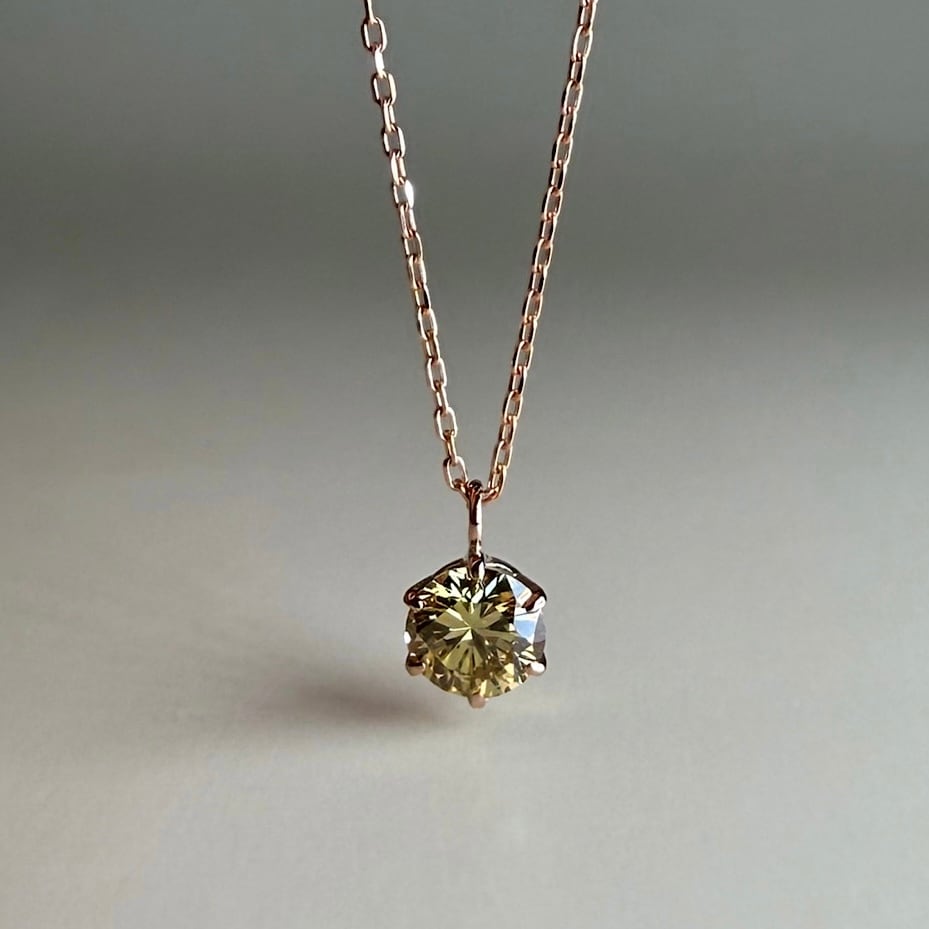 ファンシーディープブラウンイエローダイヤモンド プチネックレス 0.312ct K18ピンクゴールド チェカ 鑑定書付き
