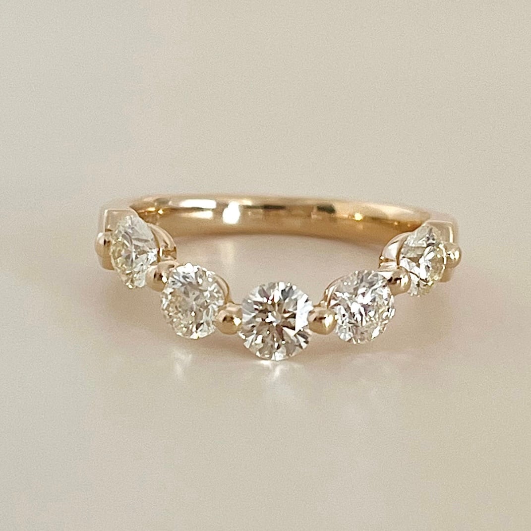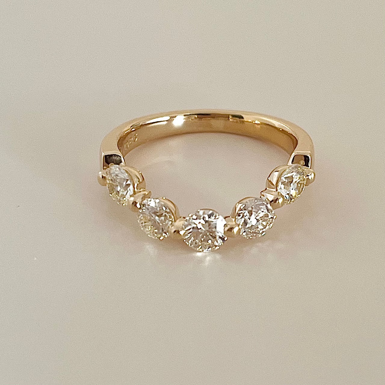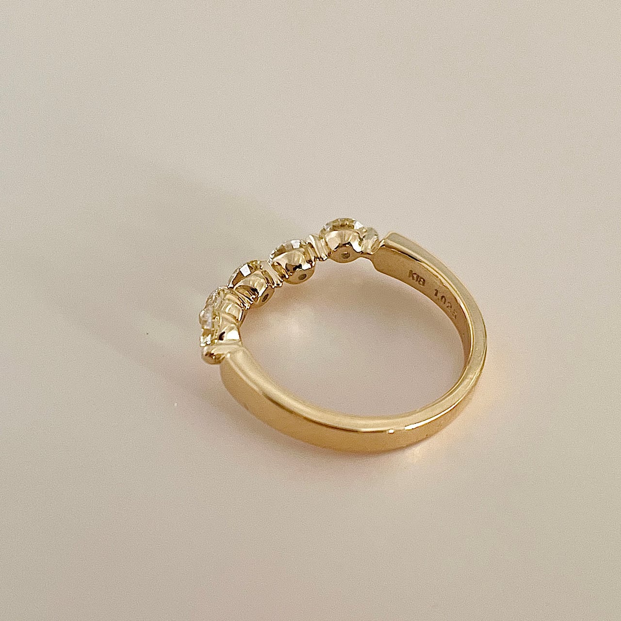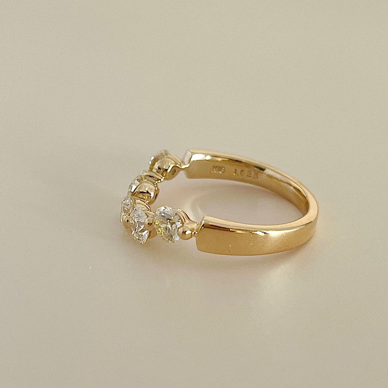 ファイブダイヤモンド Vリング 1.006ct K18イエローゴールド チェカ 鑑定書付