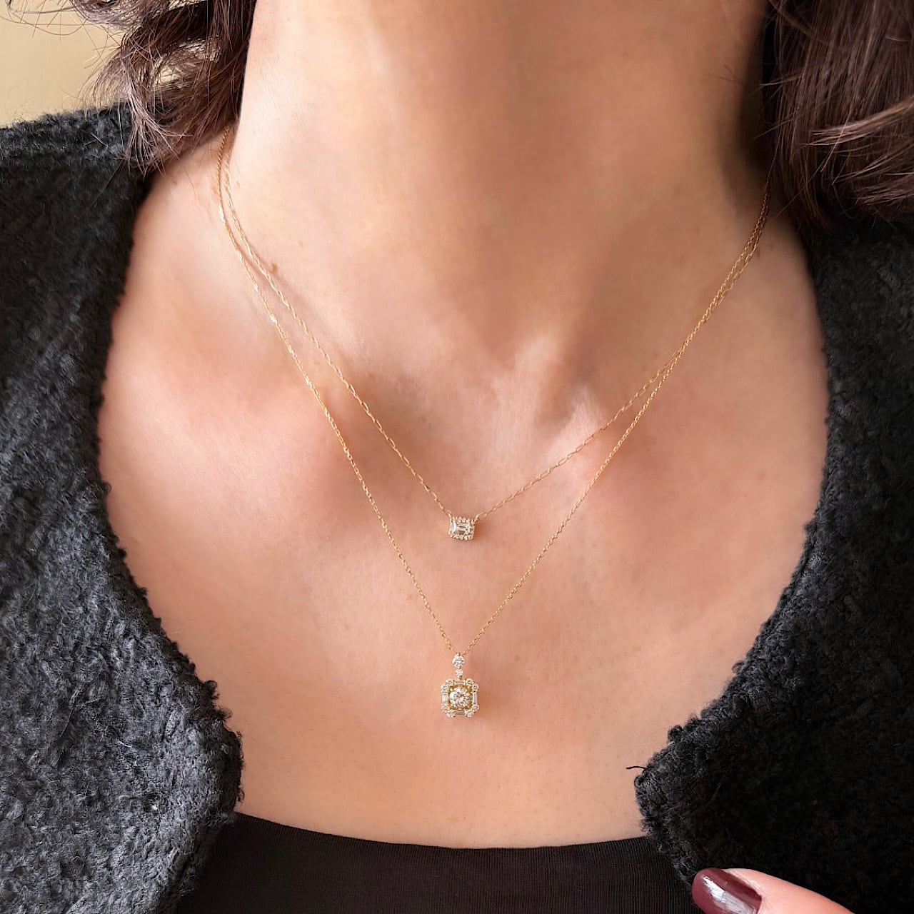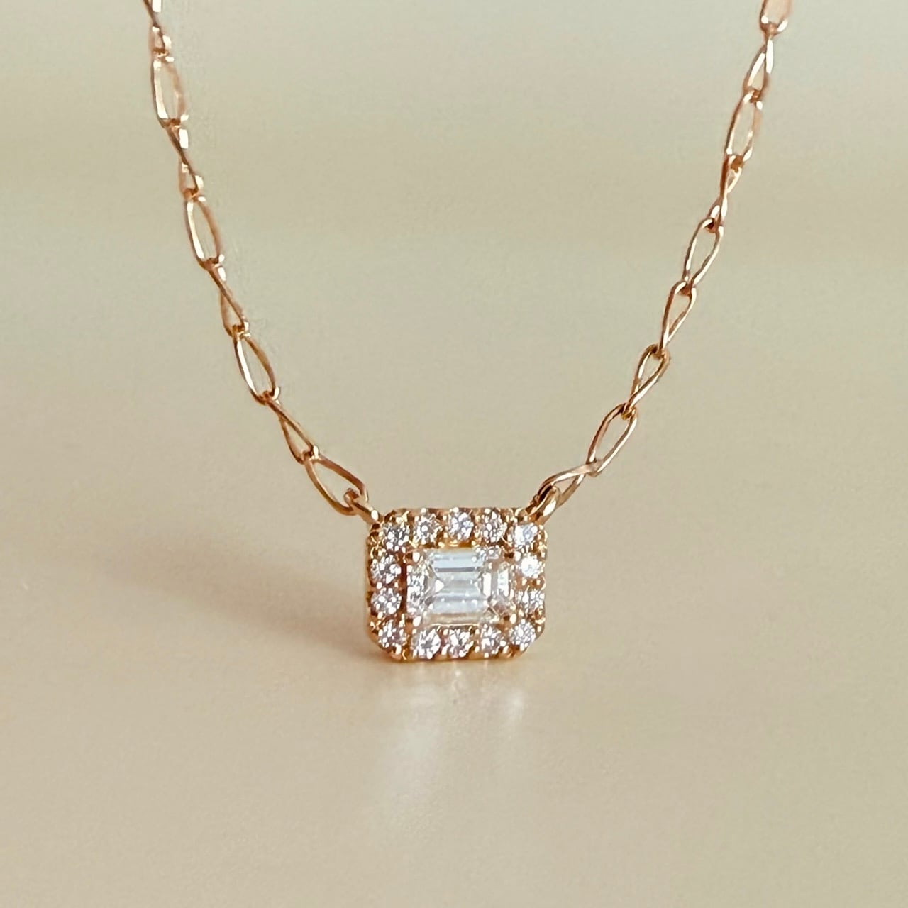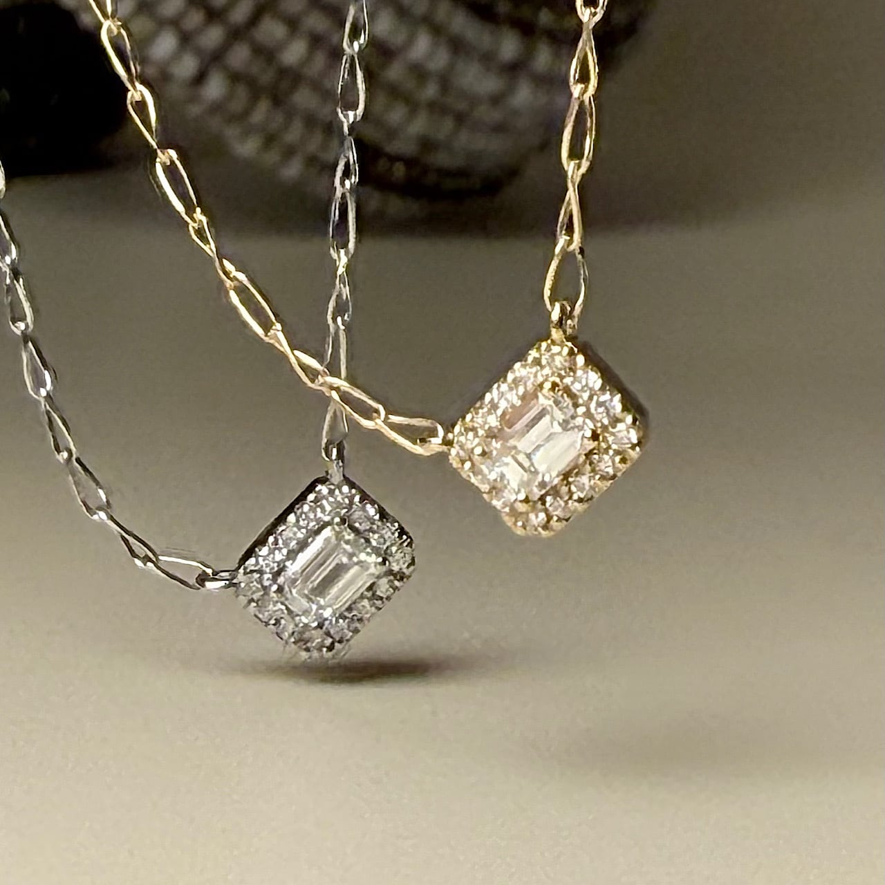 エメラルドカットダイヤモンド ペンダント 0.089ct K18イエローゴールド チェカ 鑑定書付き