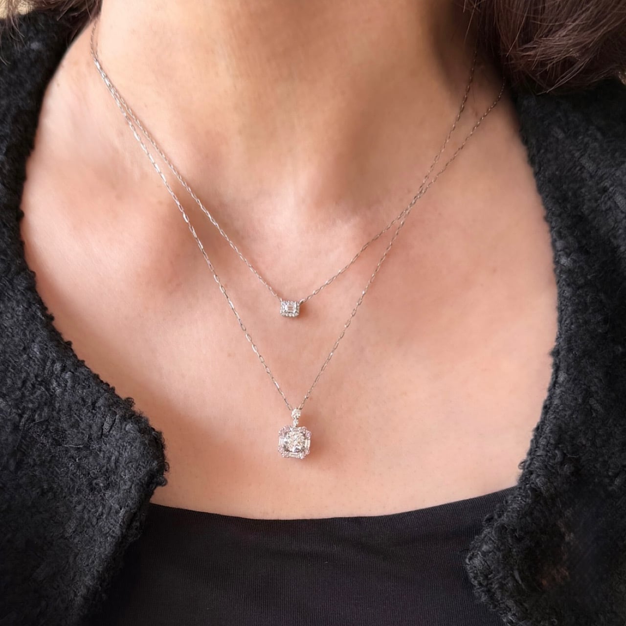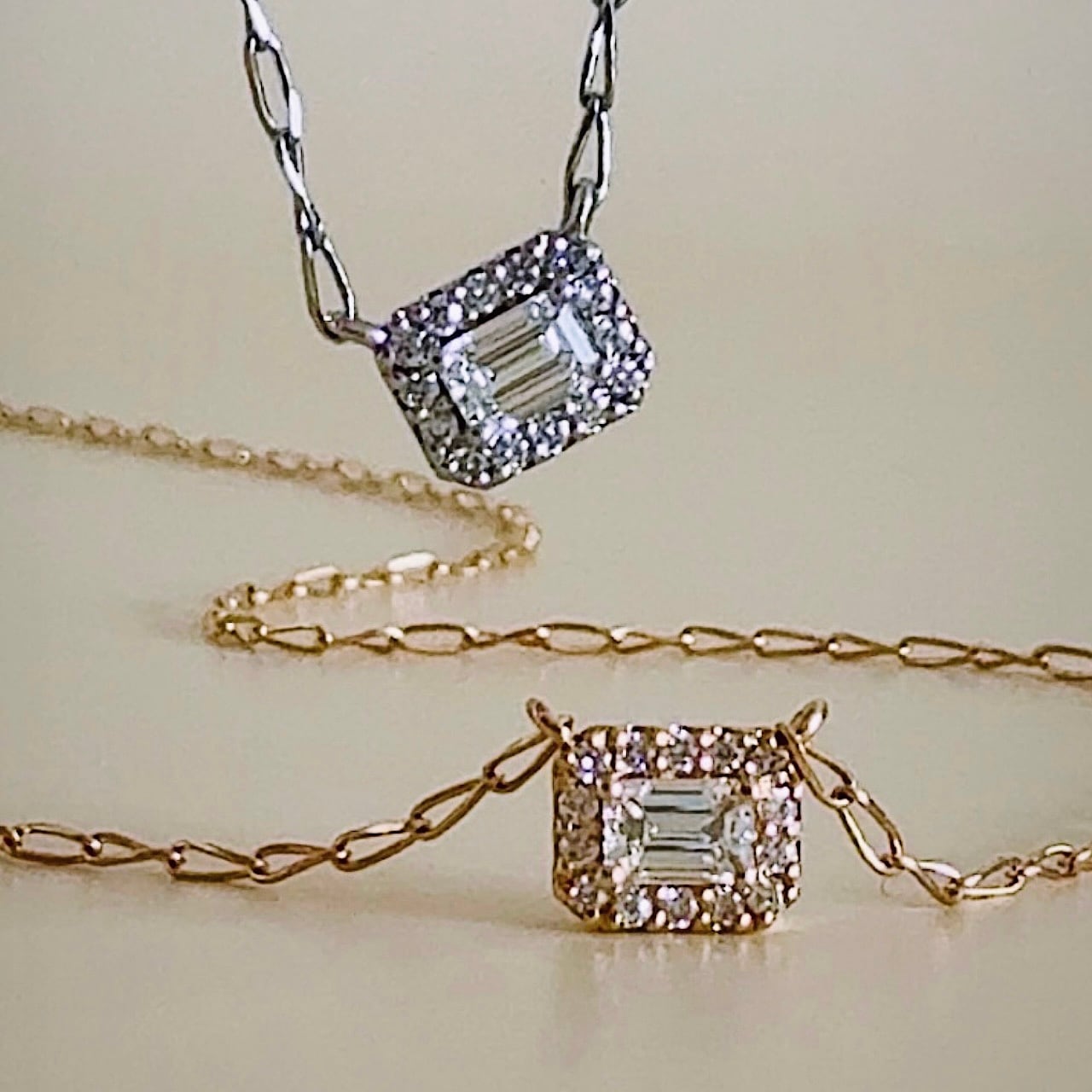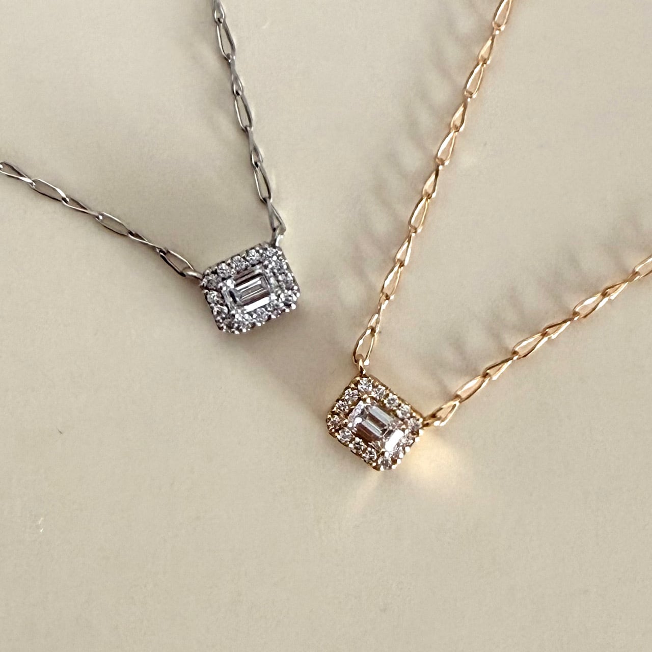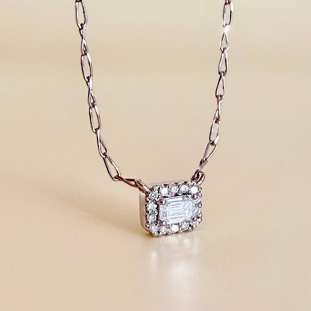 エメラルドカットの天然ダイヤモンドペンダント